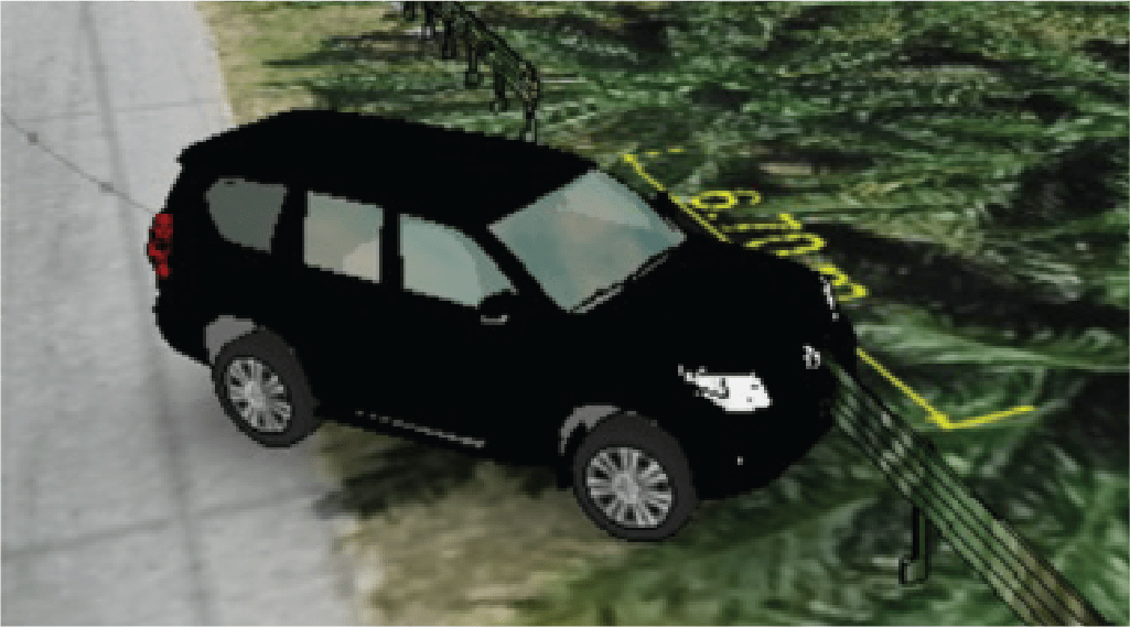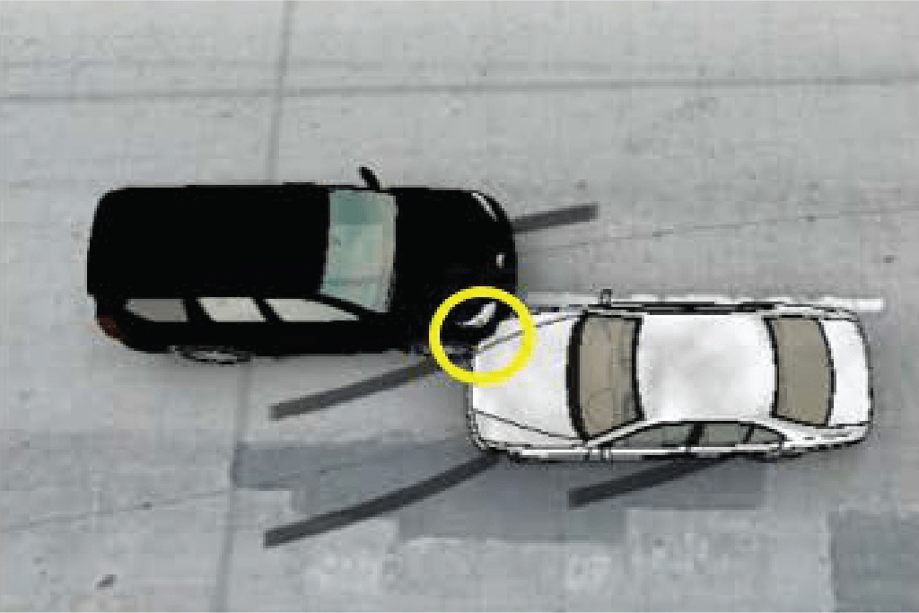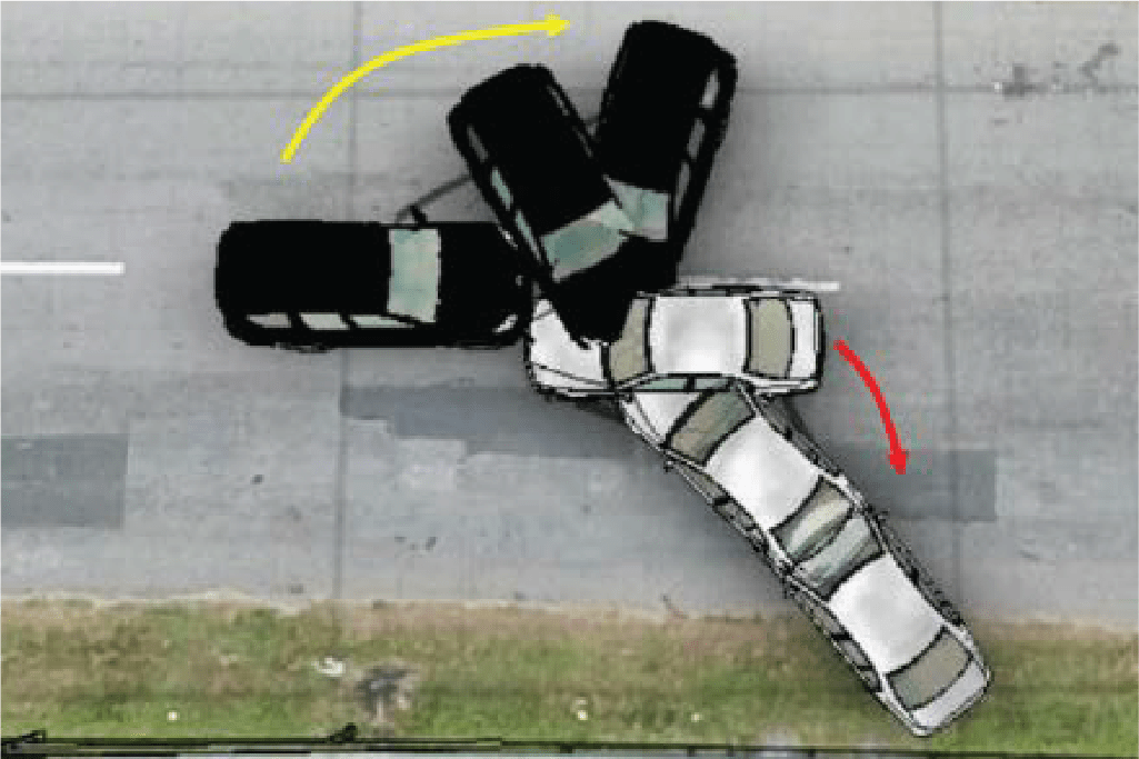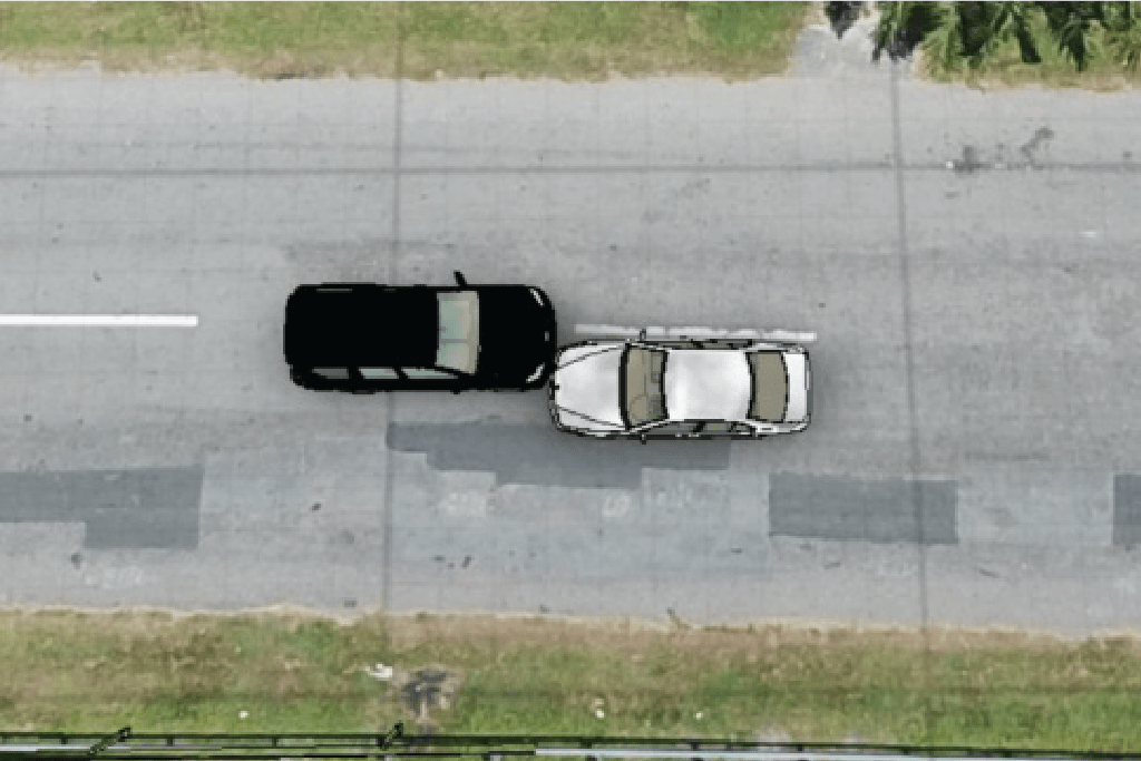Based on the positions in order to match the actual damage on both vehicles, our simulation suggested that both vehicles would not swerve to their left and hit the guardrails beside the roads, but would only rotate clockwise after the collision.