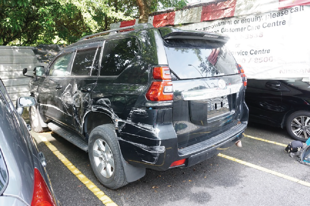- The scratches on the offside front fender (90-120cm) and nearside (maximum 120cm) of the Toyota Prado are higher than the offside front fender and bonnet of the BMW (80-95cm).