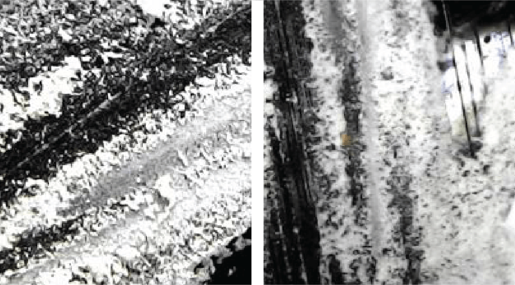 - Microscopic views of the white residue on the nearside and offside of the Toyota Prado indicate a collision with a concrete object and not the BMW or any other road objects at the scene (e.g. guardrail & electric poles).