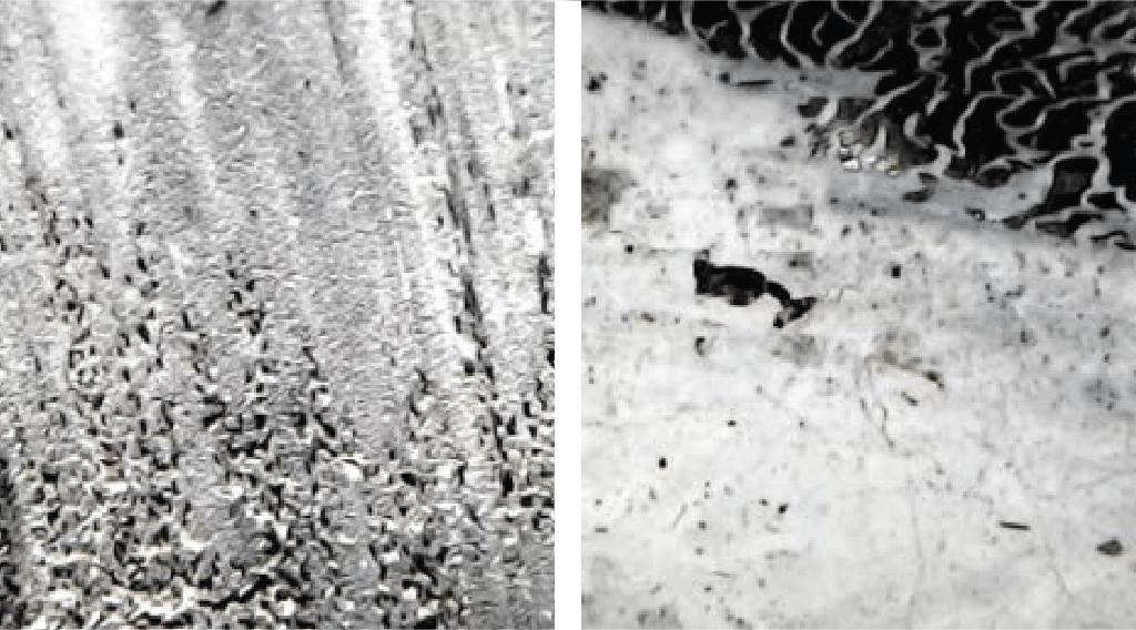 Microscopic views of the white residue on the offside front fender of the Prado.